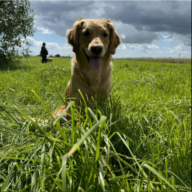 Vi bor på skønne Møn med natur og vand til alle sider. Vi har haft Golden retrievere i mange år, også i min barndom. Det er som om man ikke kan undvære dem. Nu består husstanden af Berta og Ollie og et par mennesker.